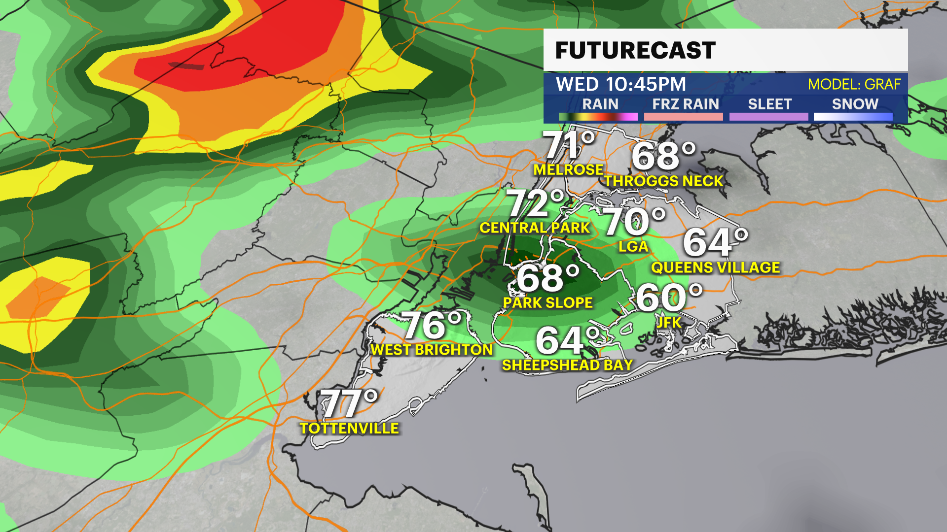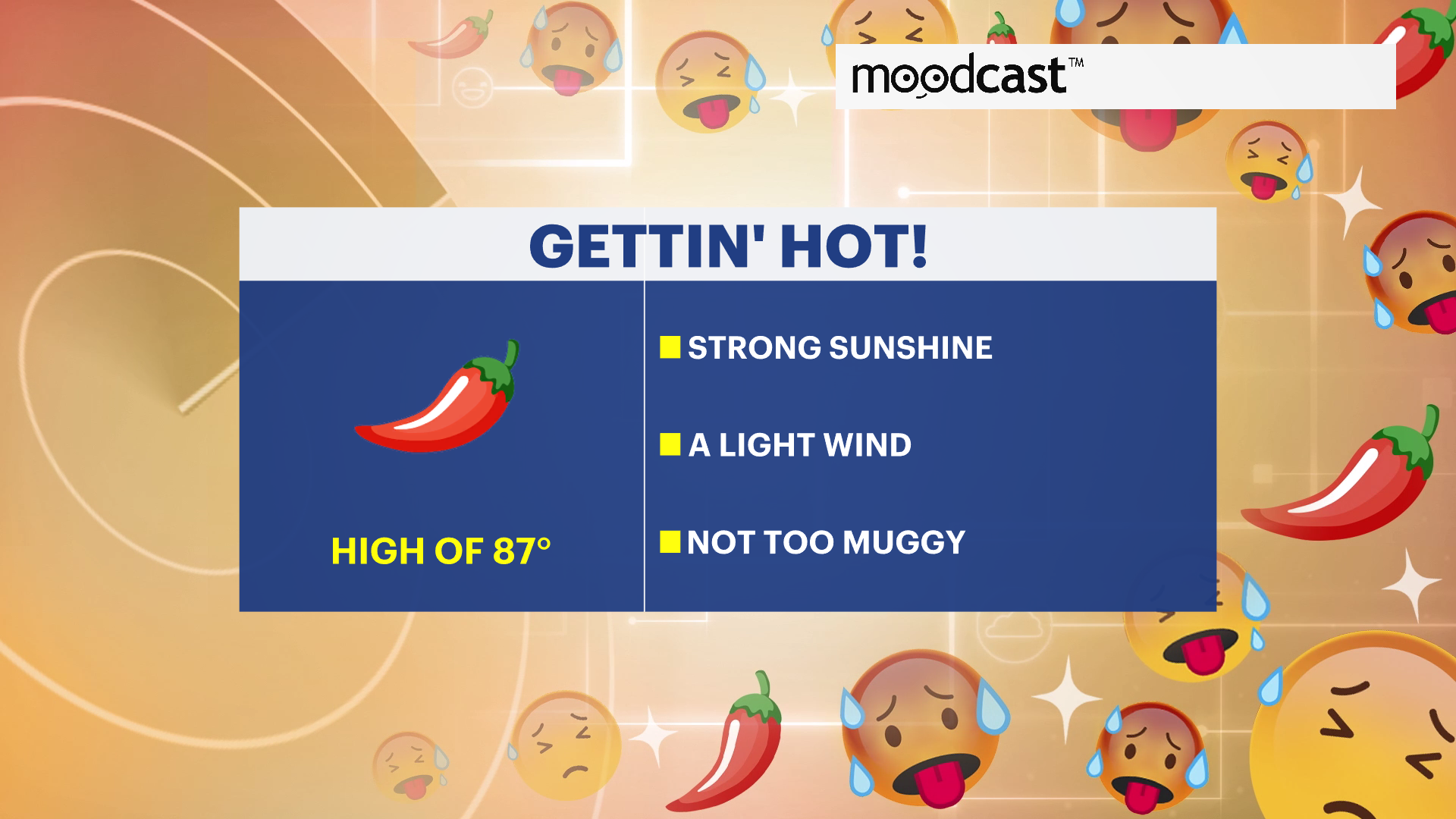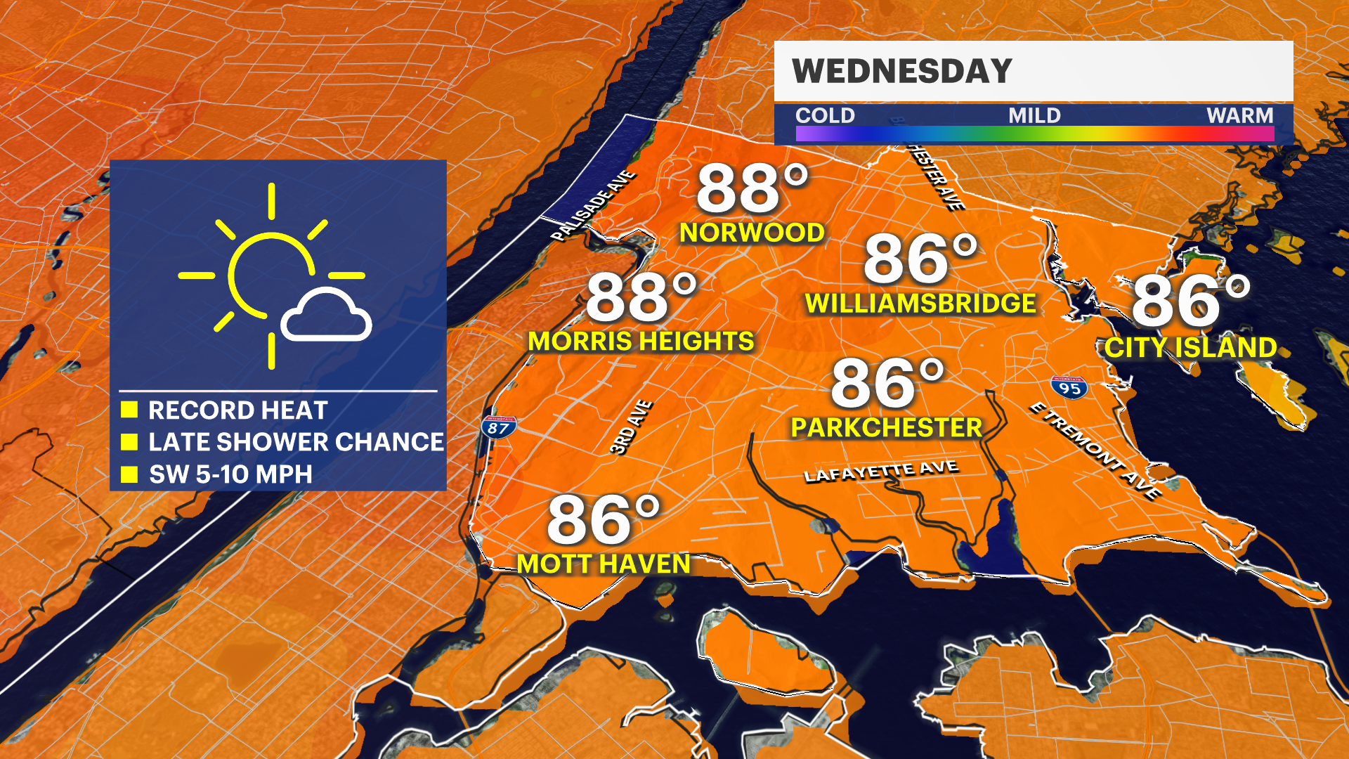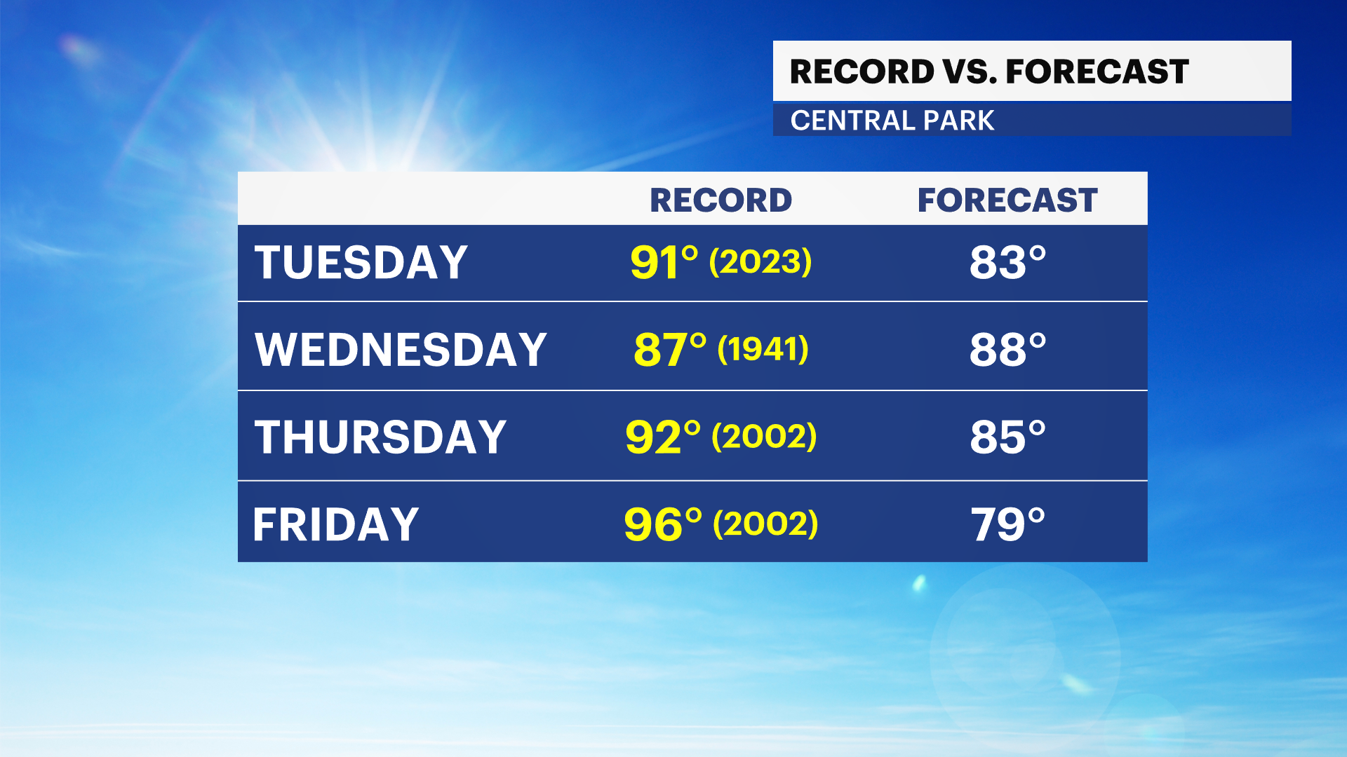 The July-like warmth continues today but with more sunshine and warmer temperatures in the low to mid-80s away from the immediate coast. An isolated passing shower possible this afternoon, but there's a better chance of rain north and west of the city. Highs will reach the mid to upper 80s away from the coast Wednesday and Thursday.