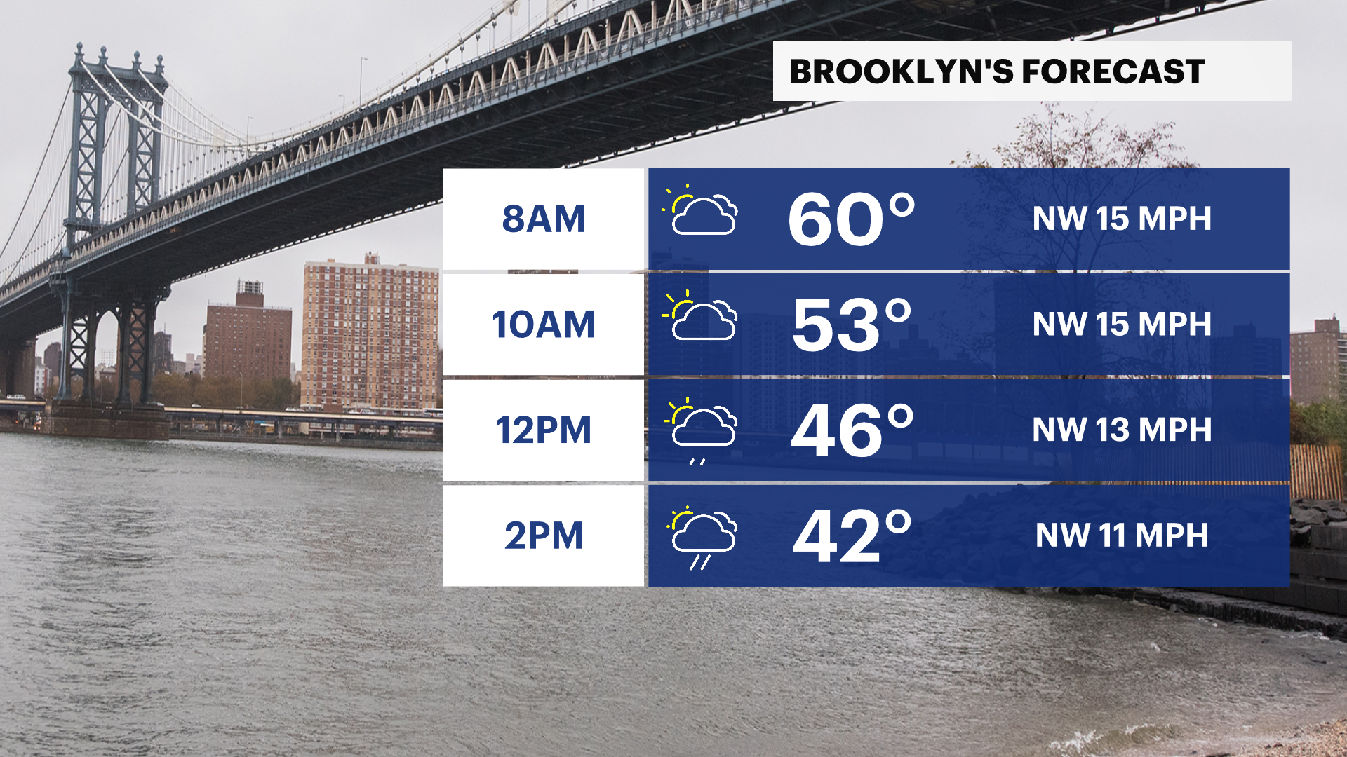 Thursday: The cold front moves through early in the morning. Temperatures will start the day mild but will drop quickly as colder air moves in. Rain may briefly mix with or change to wet snow showers before ending during the afternoon. Little to no accumulation is expected in New York City, but it will feel much cooler by the evening, with temperatures falling into the 30s.