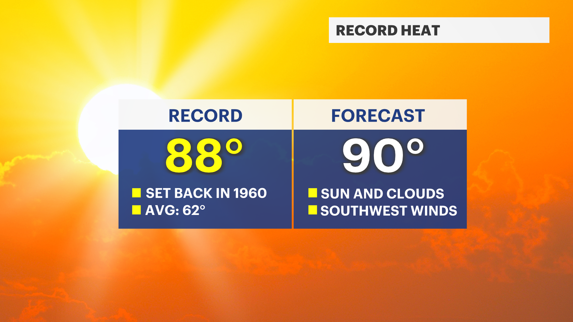 We’re starting off today with mostly sunny skies, giving way to a mixture of sun and clouds as we head through the afternoon. It’s going to be a warm day — potentially record-setting — with highs climbing into the 70s and even low 80s in spots. The record high at Long Island MacArthur Airport is 78 degrees, set back in 2024. Long Island hit 79, beating that record high.