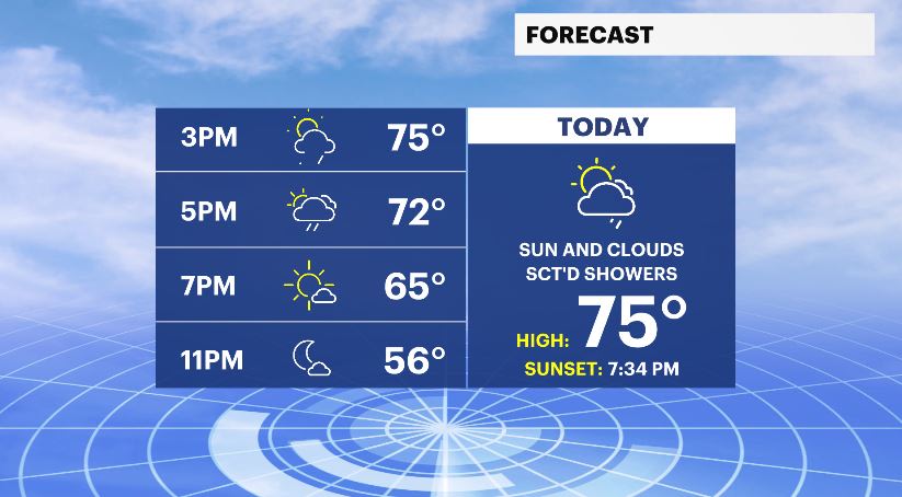 FRIDAY: Partly sunny with a few spotty showers and even an isolated brief downpour in the afternoon. Much of the day will be dry. Highs will be in the lower to middle 70s for most of Long Island and in the 60s along the South Shore and East End. Lows near 52 degrees.