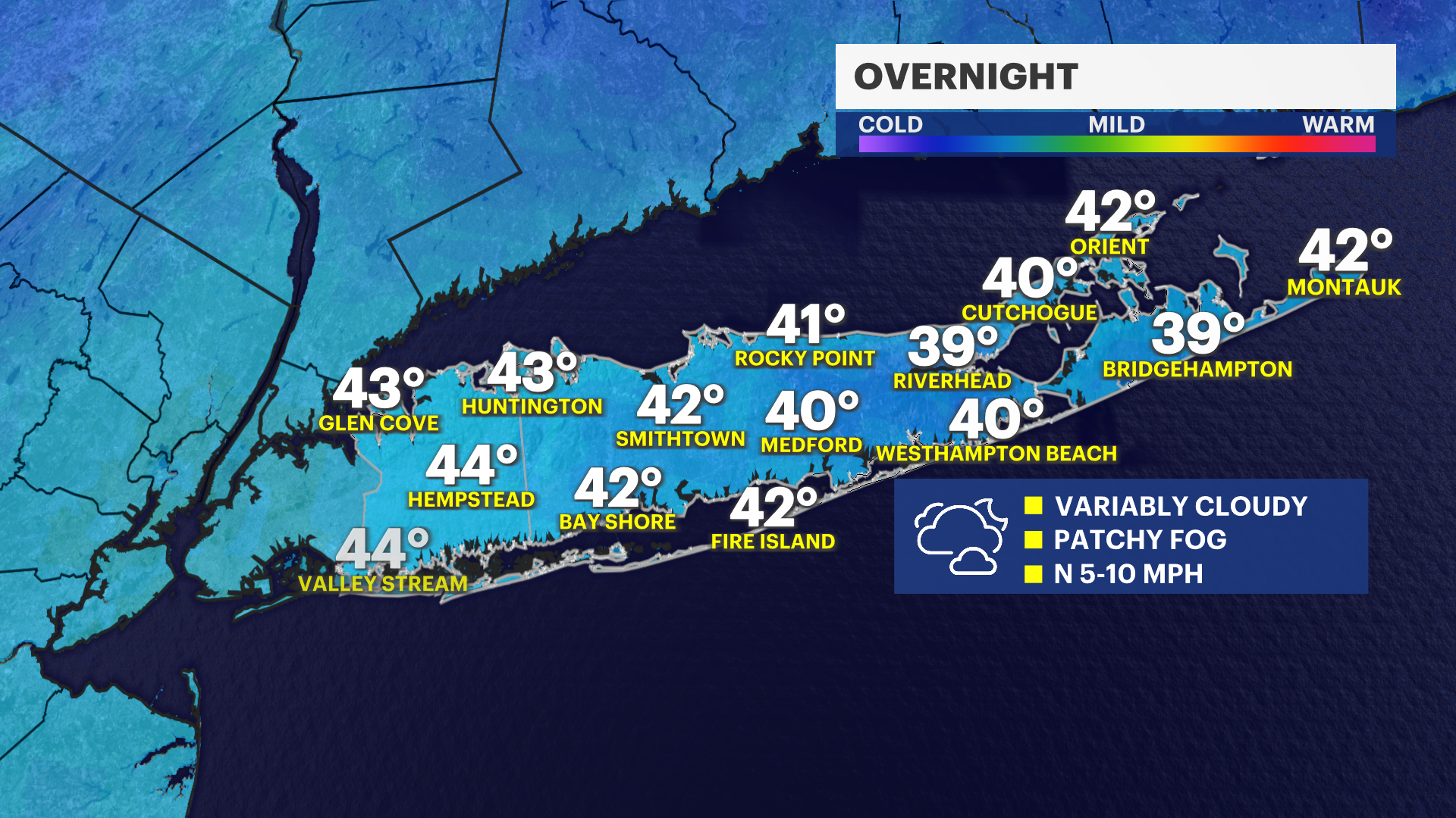 Thursday Night: Mostly cloudy, with a low around 45. North wind 5 to 10 mph.