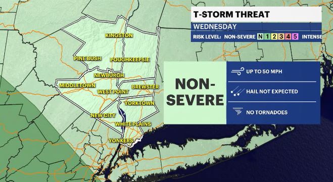 TODAY: STORM WATCH (PM) - Mostly cloudy skies with spotty to scattered showers midday. That shower potential, and isolated storms, will increase for the evening hours. Highs: upper 60s.