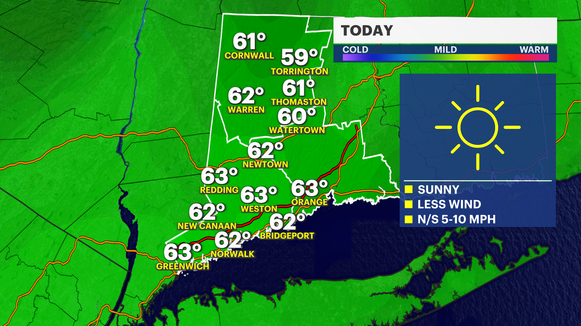 SATURDAY: Cloudy. Not as cold. Possible showers. High of 70.
