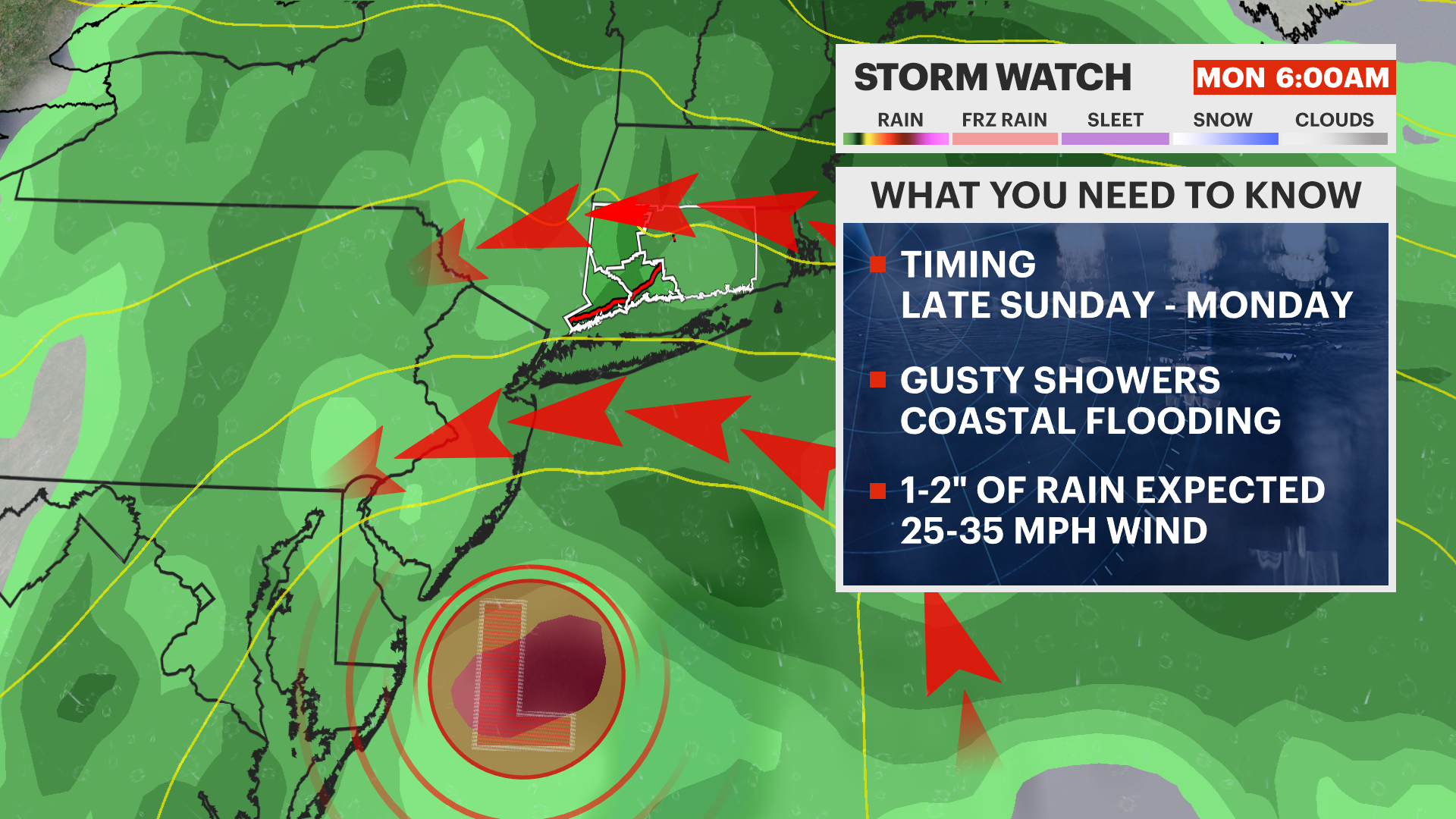 Coastal Storm brings gusty rain and a flood watch. 1-2 ft higher than usual tides are expected Sunday and Monday.