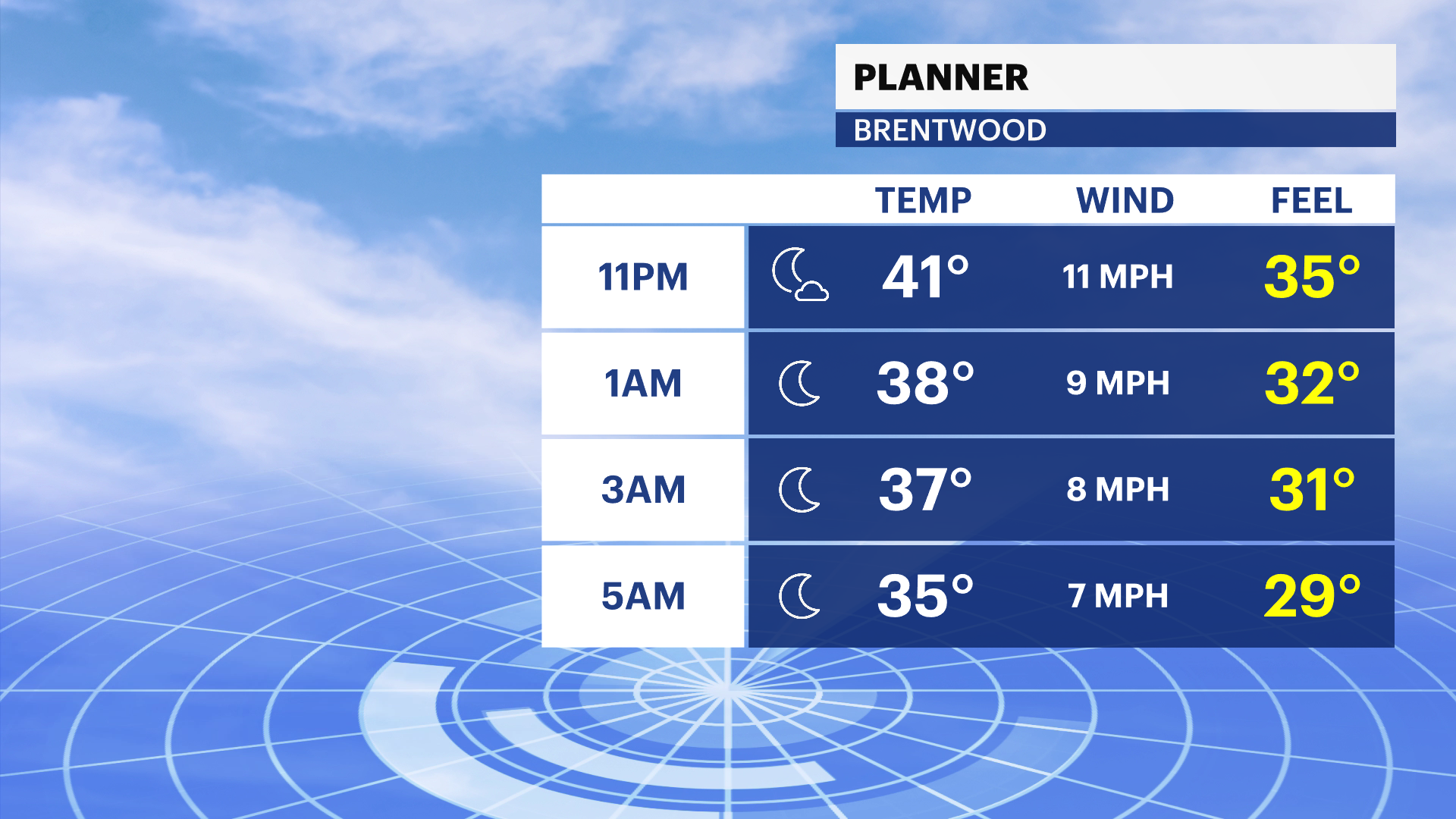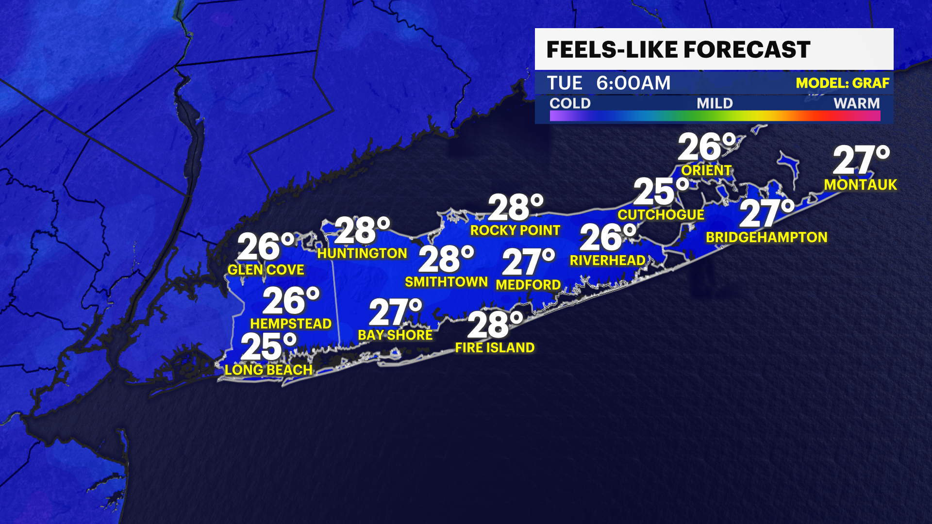 Overnight: Long Island will see mostly cloudy skies as a storm system approaches. Rain will overspread the area toward morning. There could be some areas of dense fog.