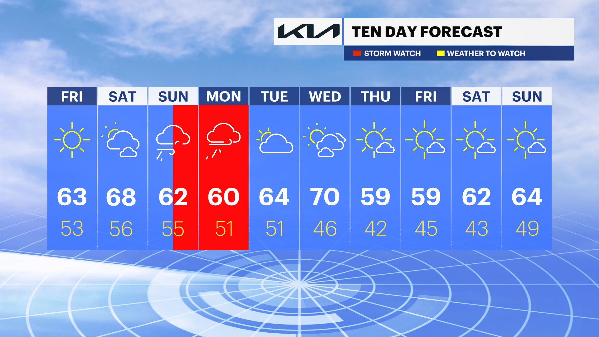 Mostly to partly cloudy and pleasant. Highs near 70.