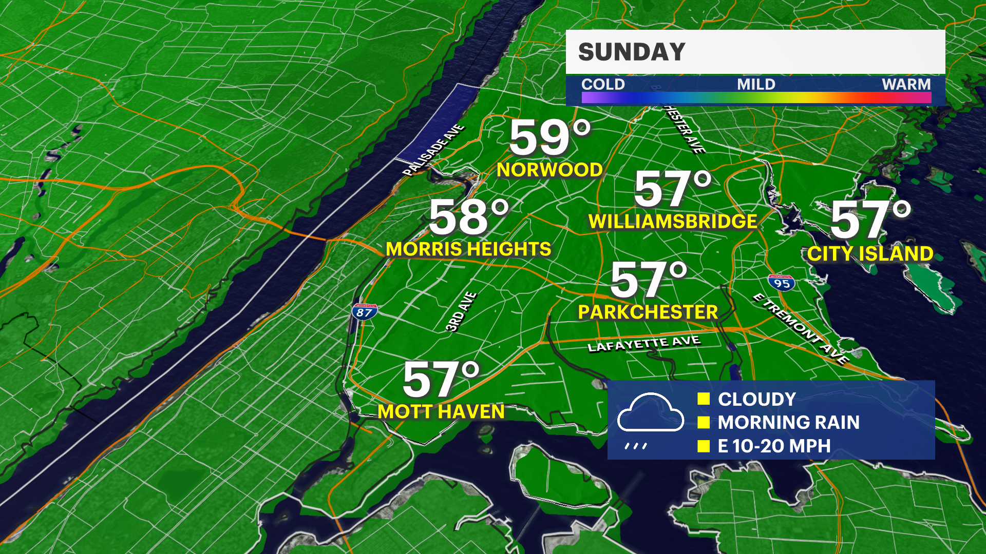 Morning rain before cloudy Sunday in The Bronx