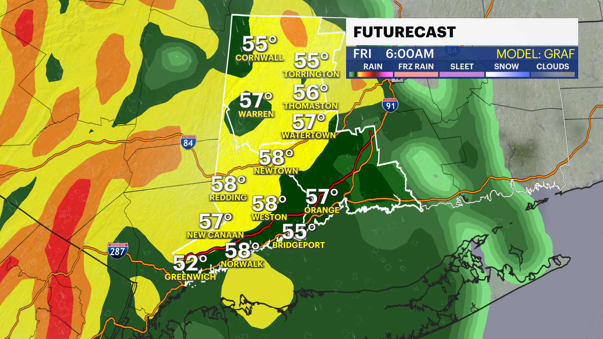 FRIDAY: Wind driven rain early, windy. High of 54.