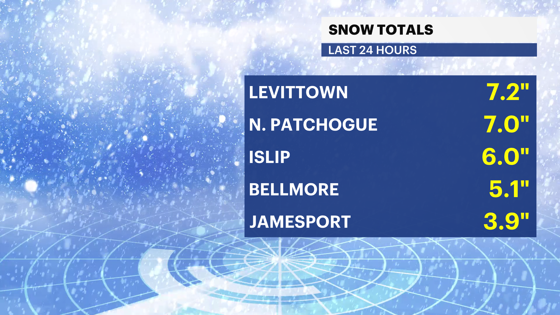Steady, accumulating snow is expected until 8 a.m. for Nassau County and until noon for parts Suffolk County. Our forecast is on target for a general 3 to 6 inches across the island, but a few neighborhoods could be outside of this range.