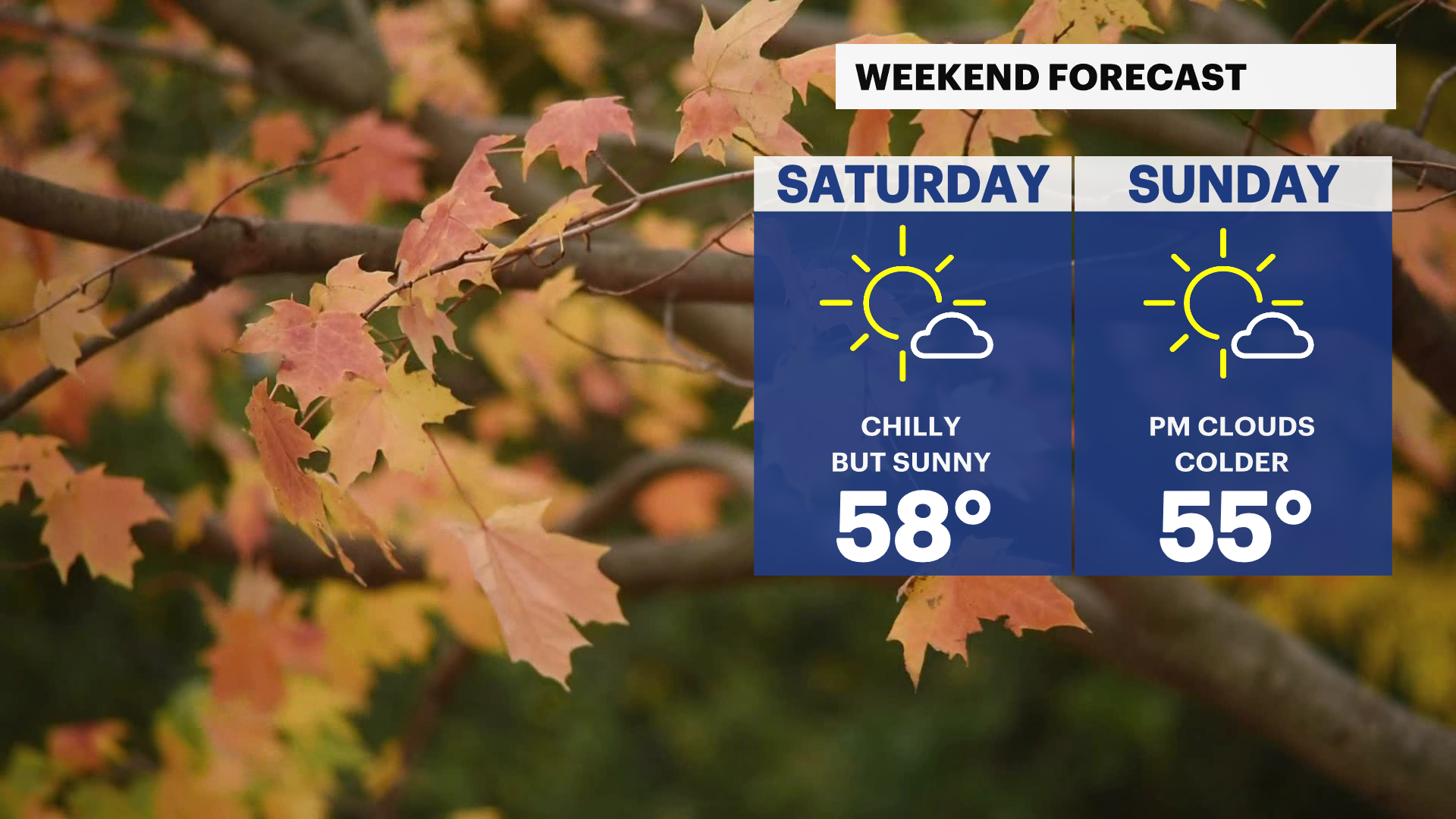 The Weekend: Saturday is the sunnier day out of the two, but expect more sun than clouds on both days. High temperatures on Saturday are only in the upper 50s. Sunday is even cooler with highs in the mid-50s. Frost is possible in cooler neighborhoods on both Saturday and Sunday morning.