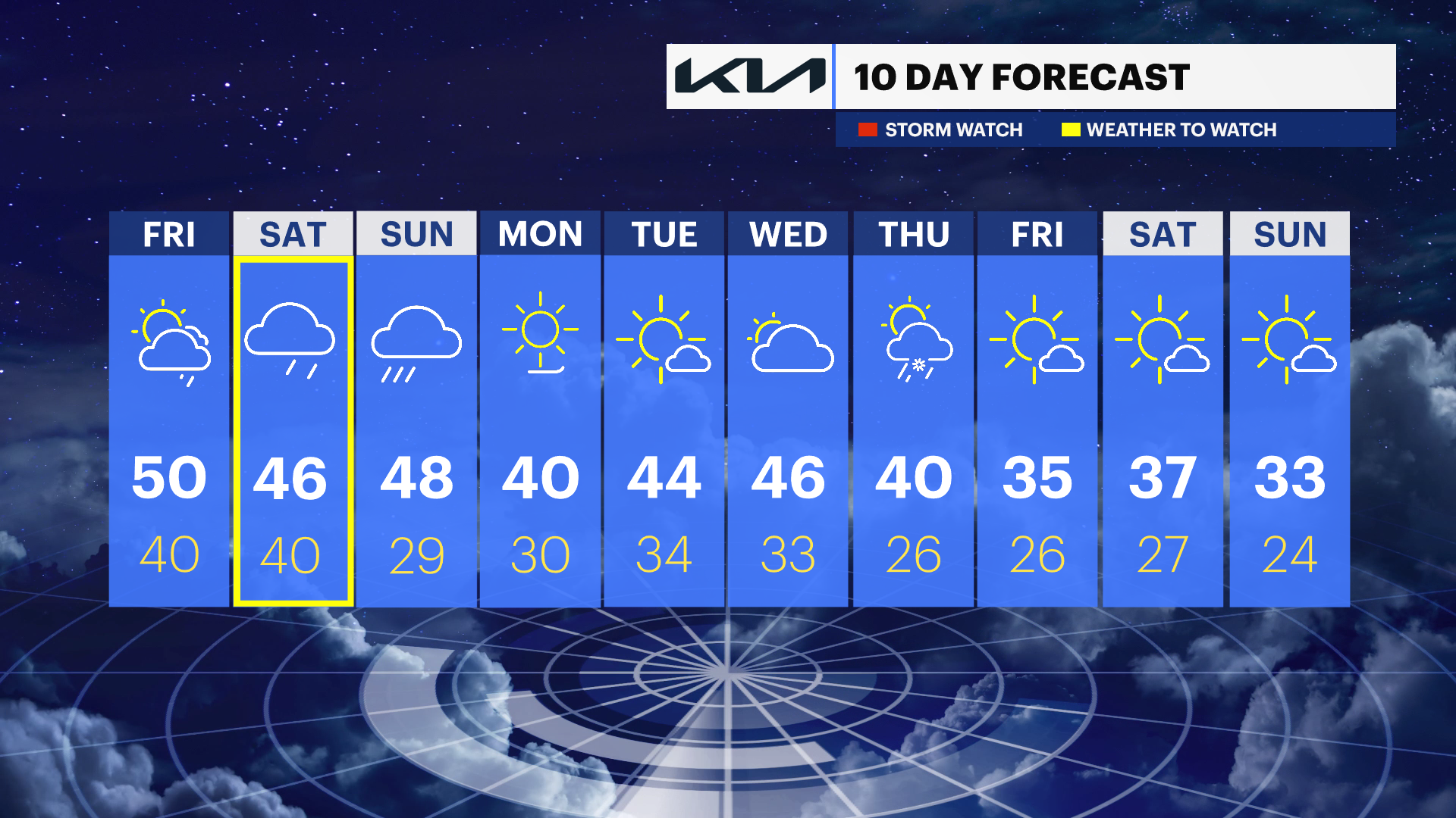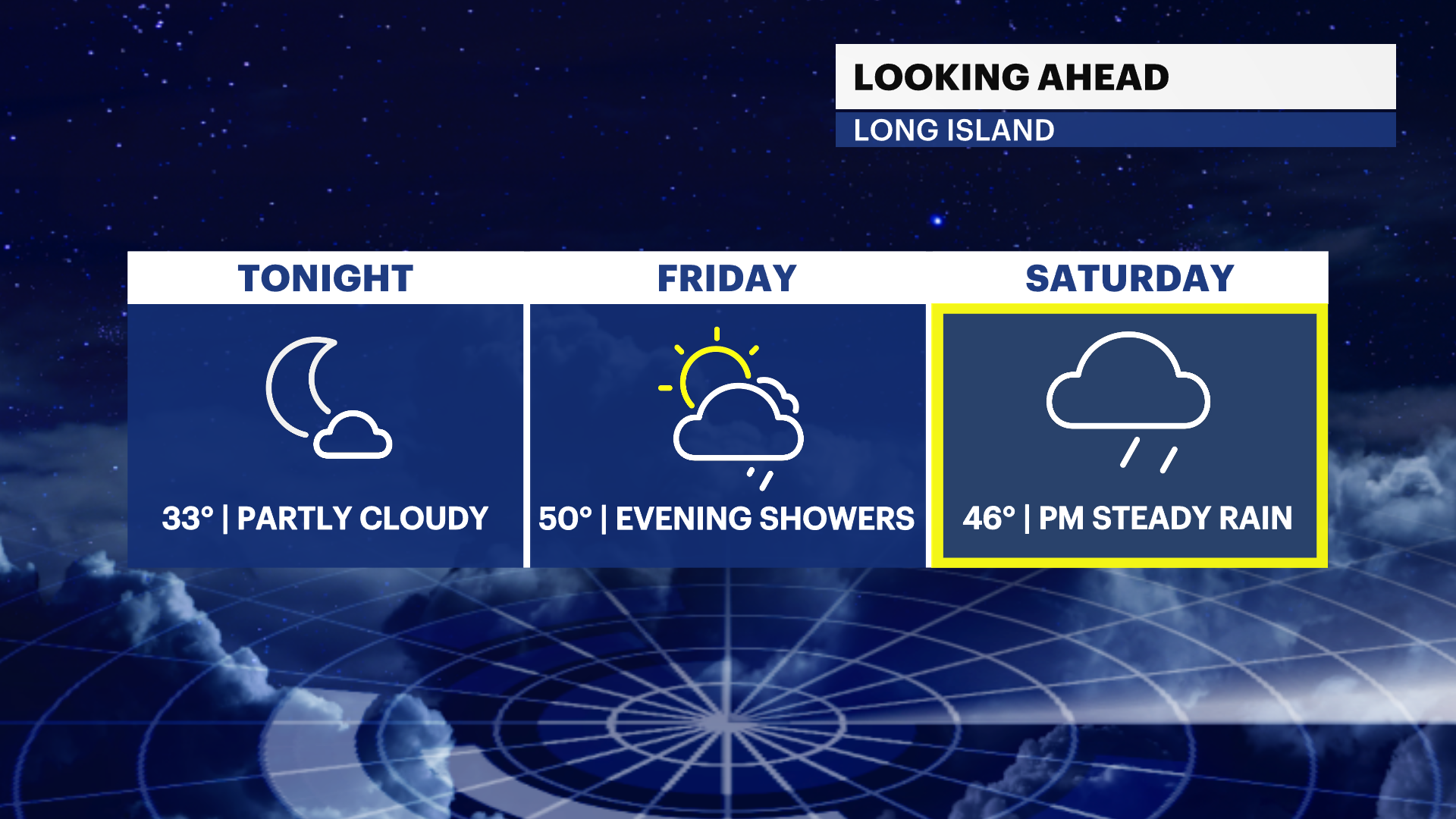 Saturday night: Cloudy with rain. Low around 38. East wind 5 to 15 mph becoming north winds after midnight. New precipitation amounts between a half and three-quarters of an inch possible.