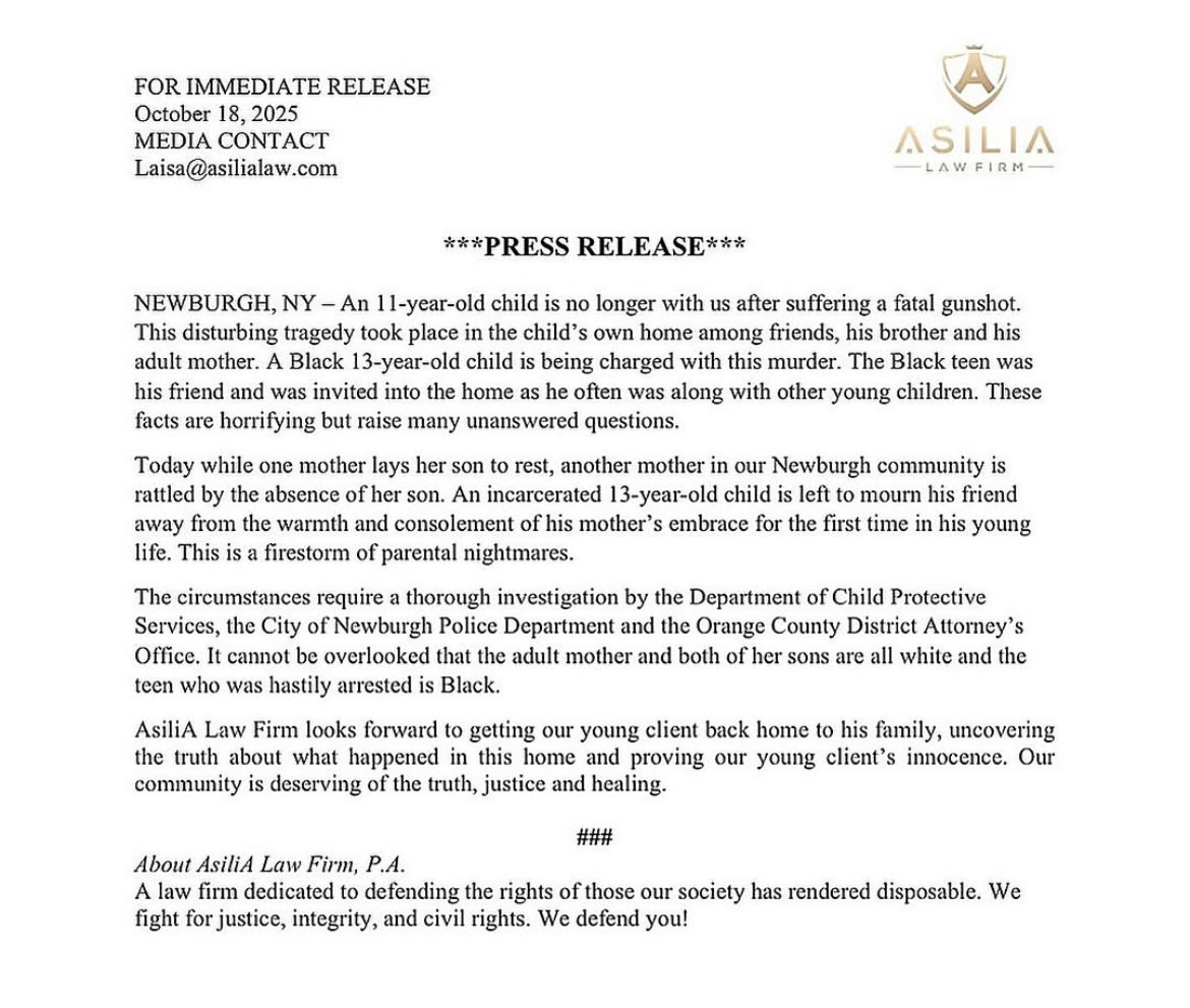 The attorney representing a 13-year-old boy charged with murder in this month’s deadly shooting in Newburgh is releasing new information about the case and calling for a deeper investigation.