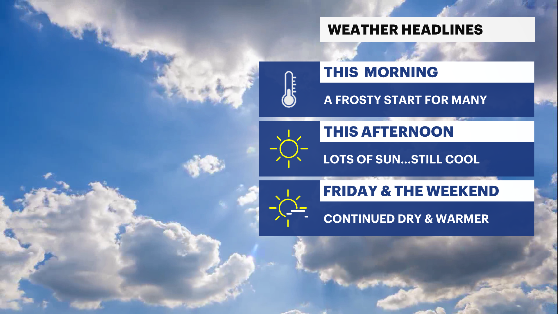 Temperatures begin to rebound into Thursday, with even warmer weather arriving for Friday and into the weekend.