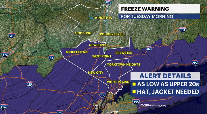 Freeze Warning is in effect from Midnight Monday night to 9am Tuesday