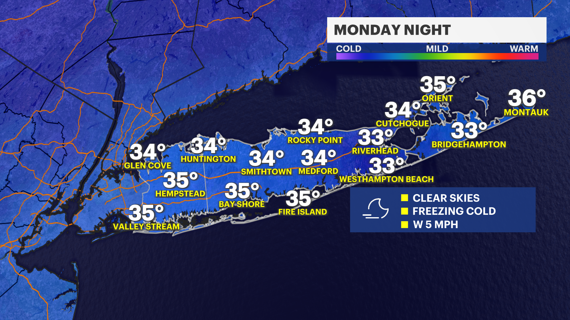 Temperatures will drop into the mid-30s across Long Island. It likely won’t freeze in most spots, but a frost advisory is in effect for Suffolk County, meaning sensitive plants could still be damaged. If you’ve started gardening, it’s a good idea to cover or bring plants inside overnight.