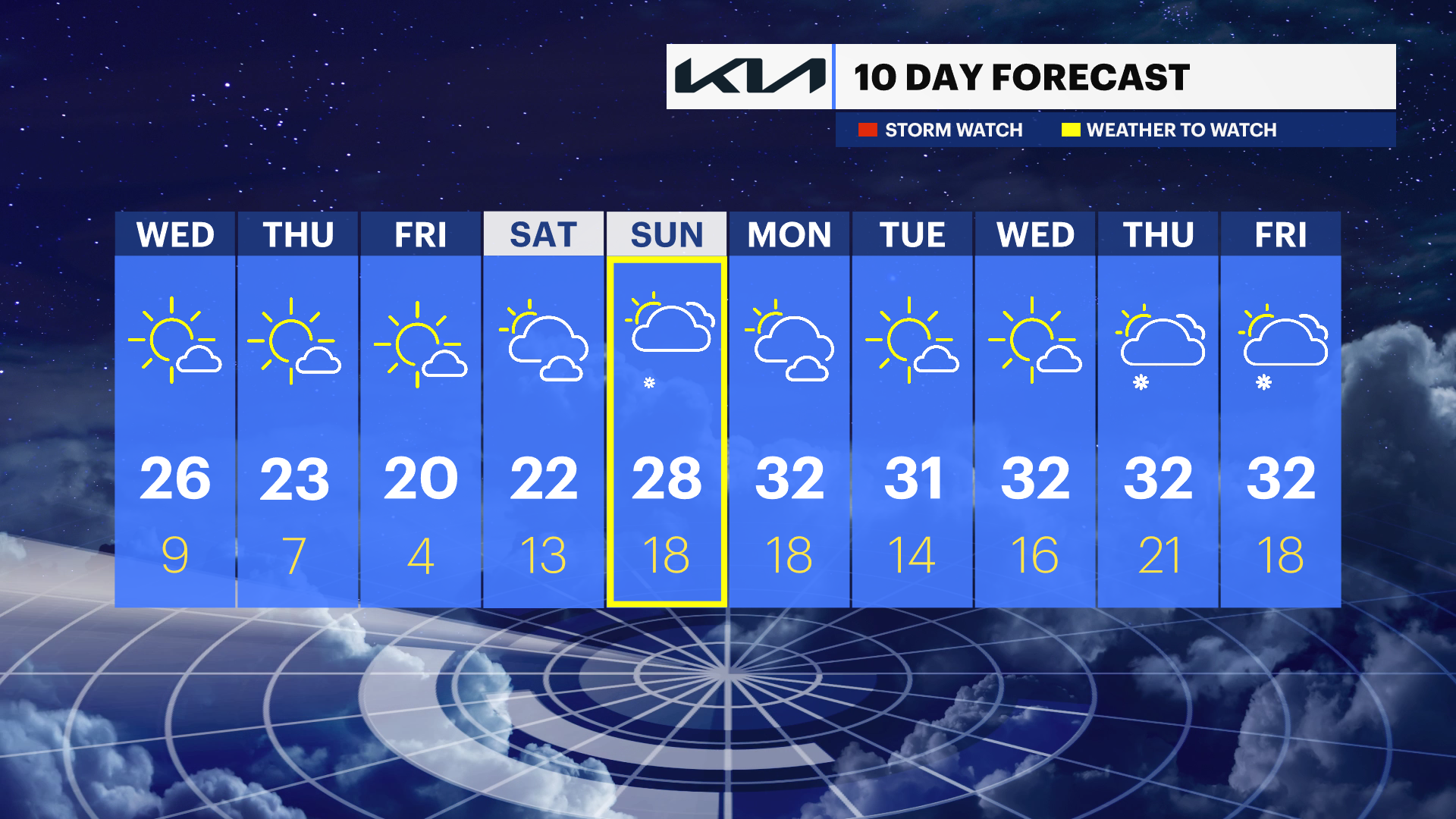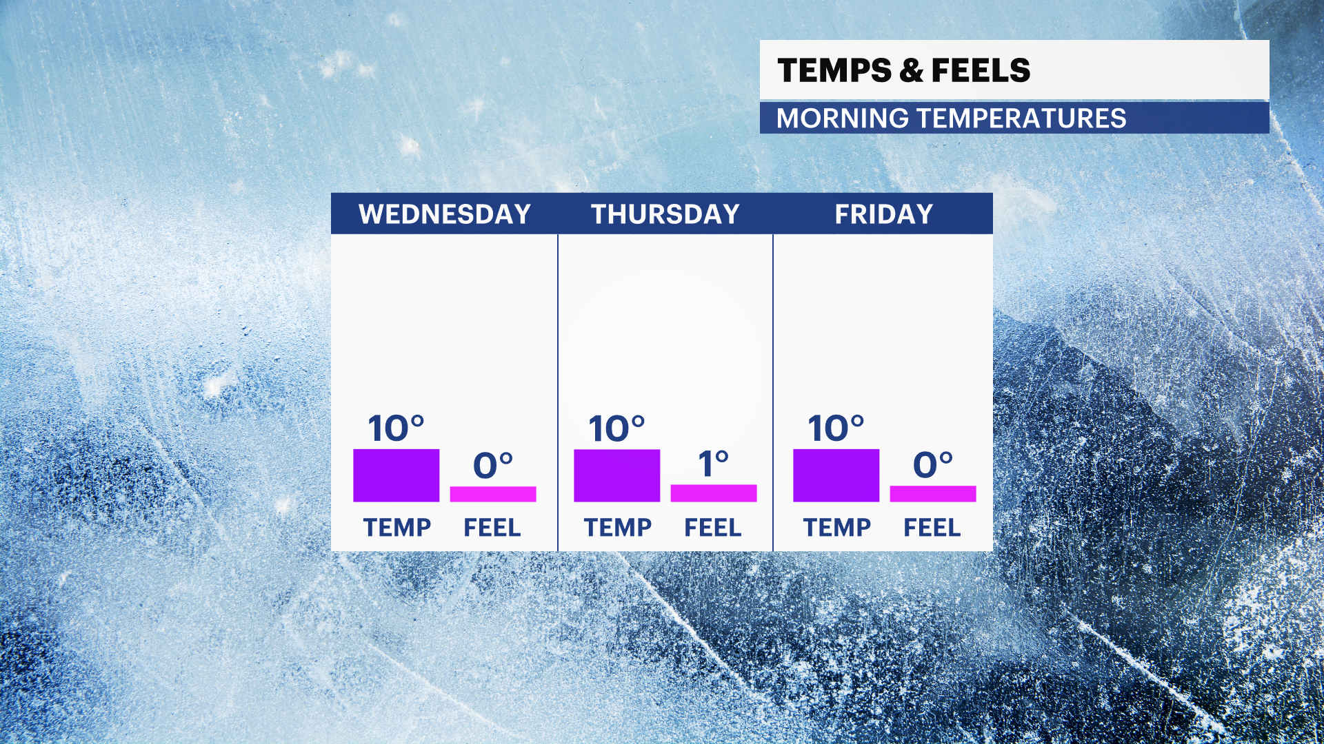 This will keep temperatures well below normal for the next few days. Temperatures heading into the morning will range from the single numbers to near 10 degrees, but with the winds, it will feel more like 5 to 10 degrees below zero. Remember to dress for these cold temperatures and cover all exposed skin when going outside. Protect the pets as well.
