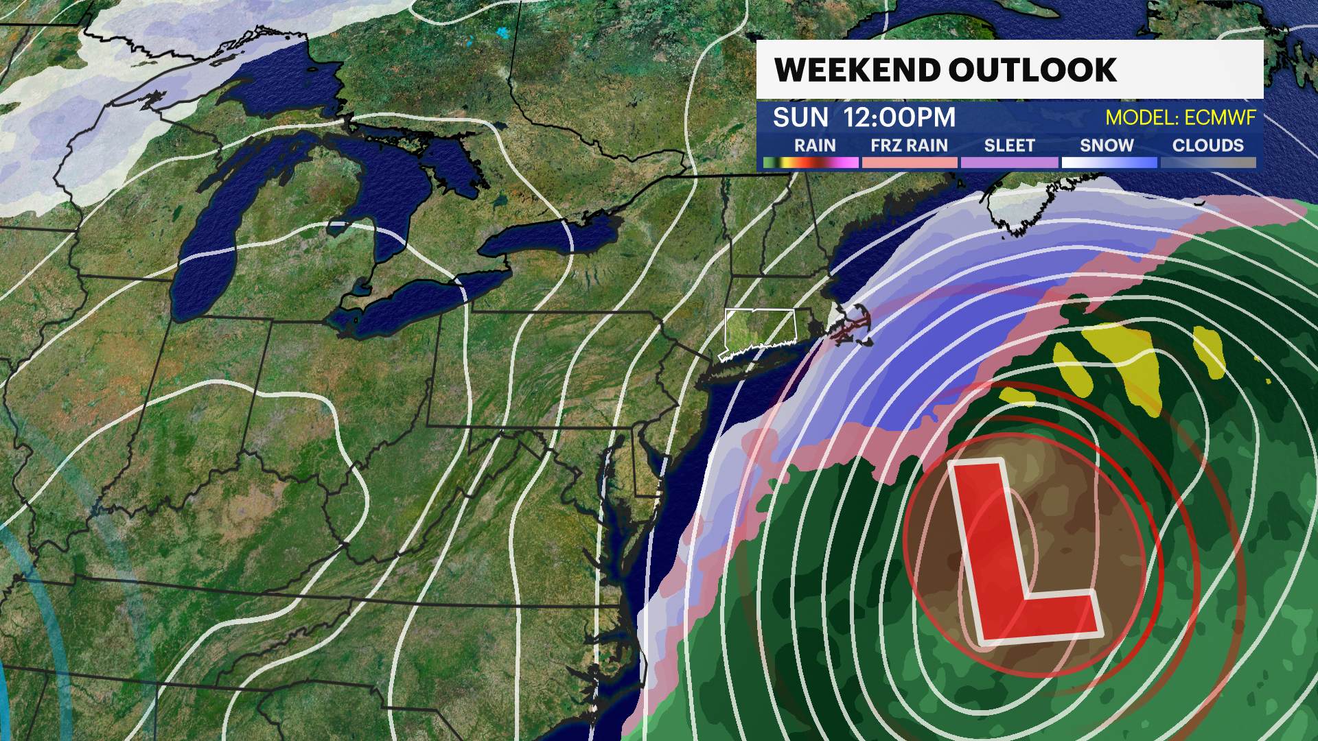 There is still the potential for a storm over the weekend. A strong coastal storm will develop off the Southeastern coast on Saturday. There is the potential for strong winds and even some snow in Connecticut if this low comes close enough to the tri-state area. It's still too early for specific impacts due to the wide spread in modeled solutions.