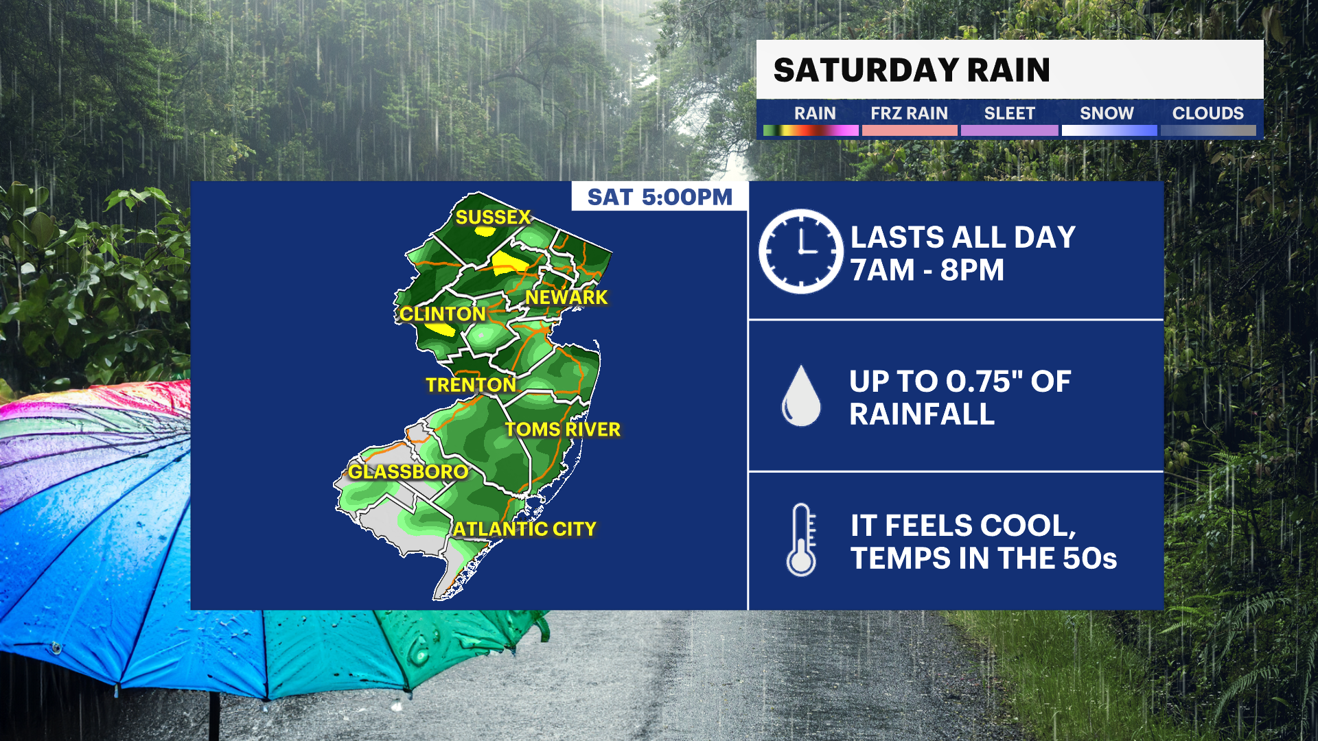 Rain returns Saturday from midmorning through the afternoon. Up to 0.75" of rain is expected between 7AM and 8PM. Some showers might linger into Sunday morning, but likely will end early.